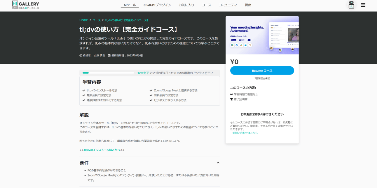 AIツールギャラリーにて「オンラインコース」を制作中!