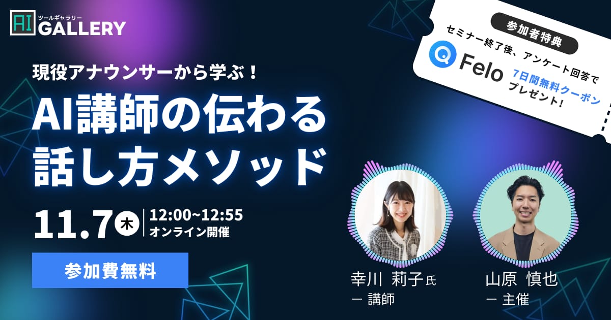 今回は、AIツールギャラリーが主催するオンラインセミナーをご紹介します!